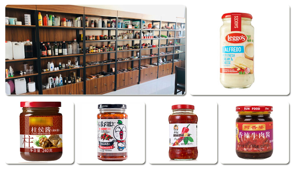顆粒醬料灌裝機-全自動辣醬灌裝機細節(jié)展示及樣品展示